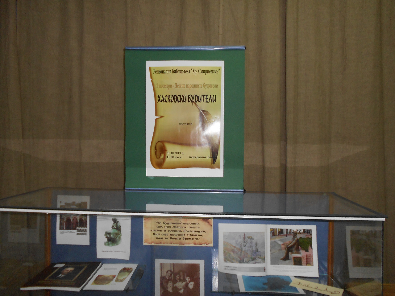 Във връзка с деня на народните будители посетихме изложбата, която подреди Регионалната библиотека „Христо Смирненски”. Във фоайето бяха изложени книги, албуми, публикации от стари вестници, фотоси и илюстрации за живота и делото на видни хасковски творци и фамилии, оставили на поколенията пример за свободен дух.